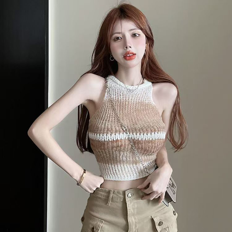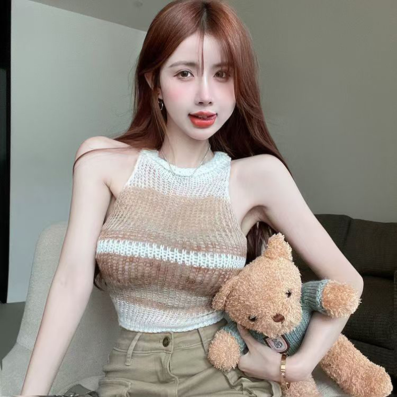 YF7494-图片色韩版小清新蕾丝边系绳条纹显瘦小众设计INS时尚休闲上衣