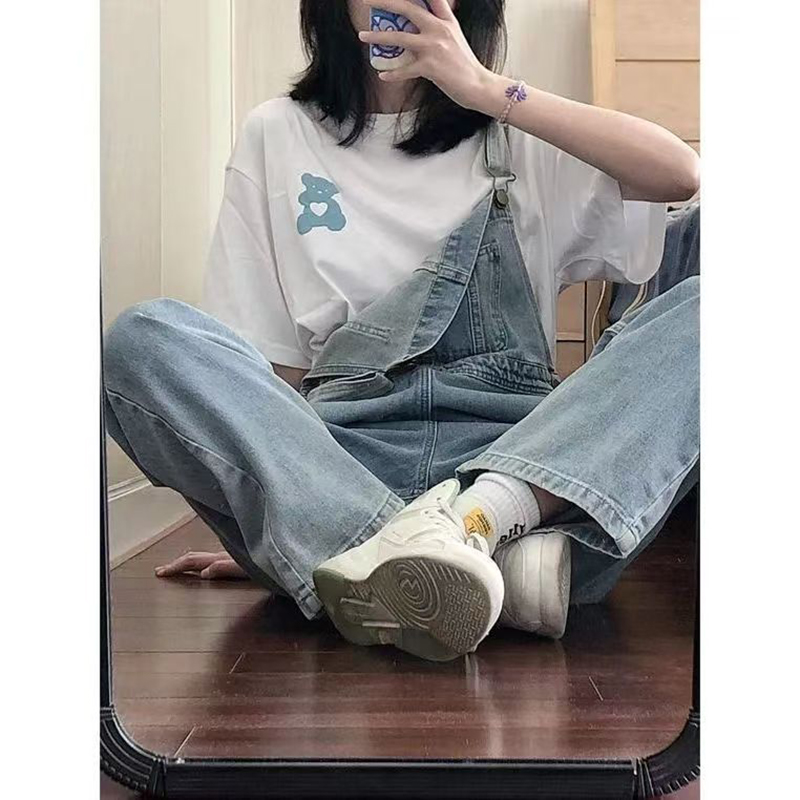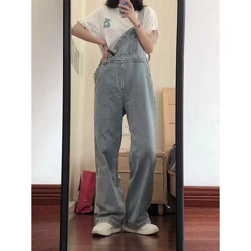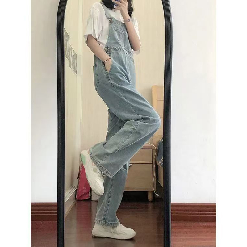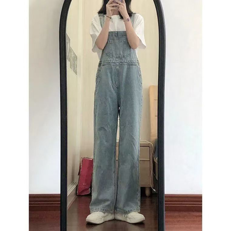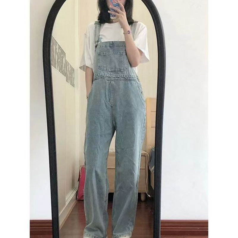 YF7546-图片色韩版夏季吊带连身宽松直筒新款牛仔背带裤 学院派连体裤