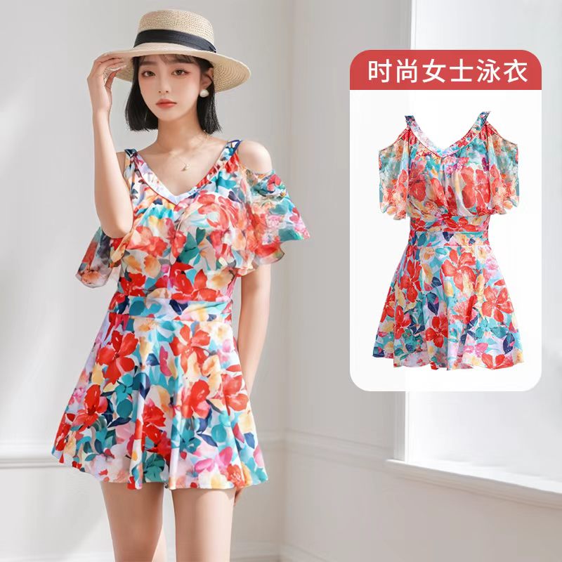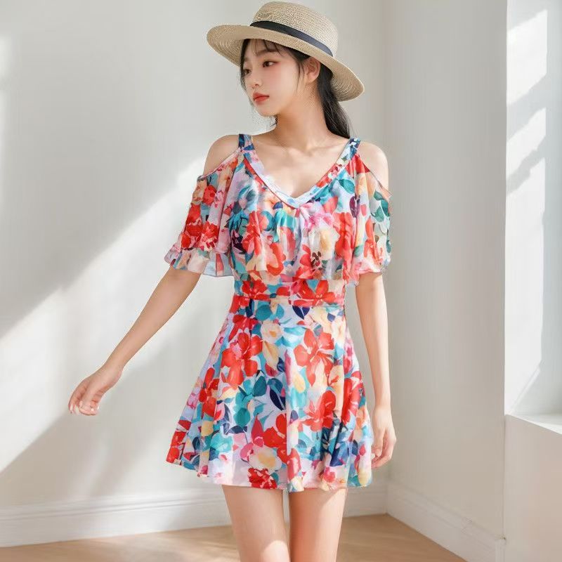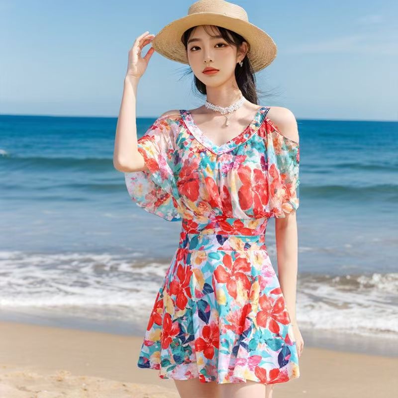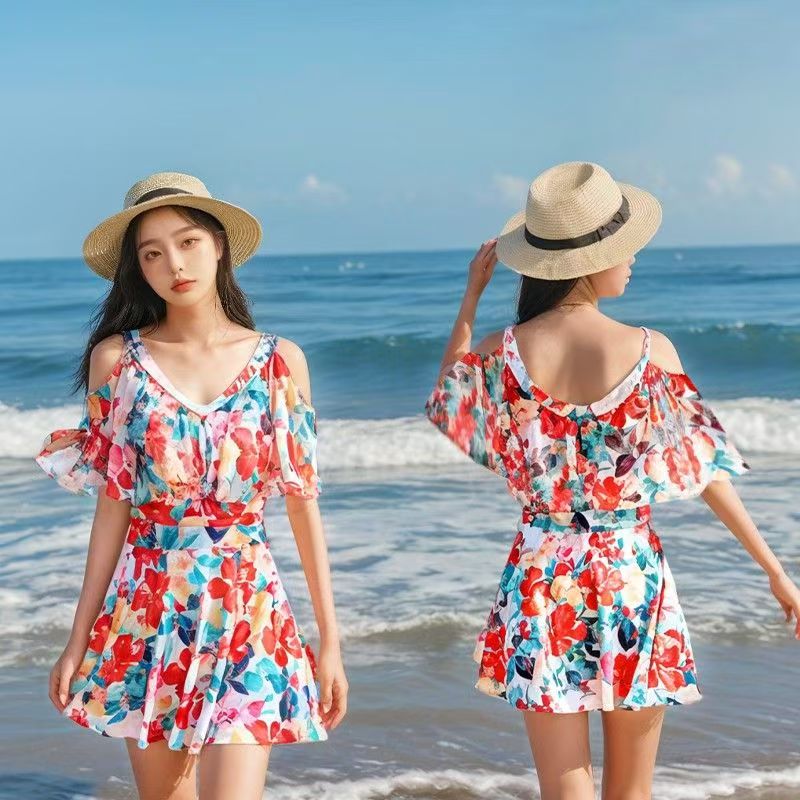 YF7569-图片色夏季碎花吊带镂空收腰平角显瘦时尚度假沙难渡游水泳装